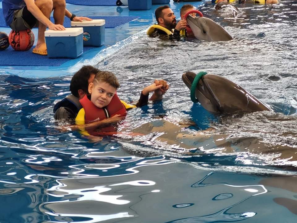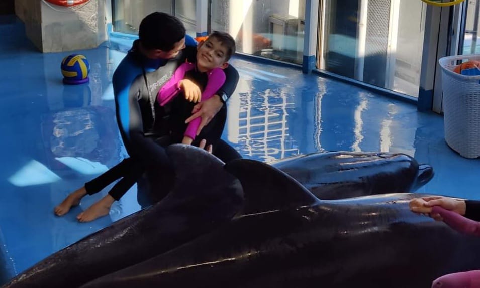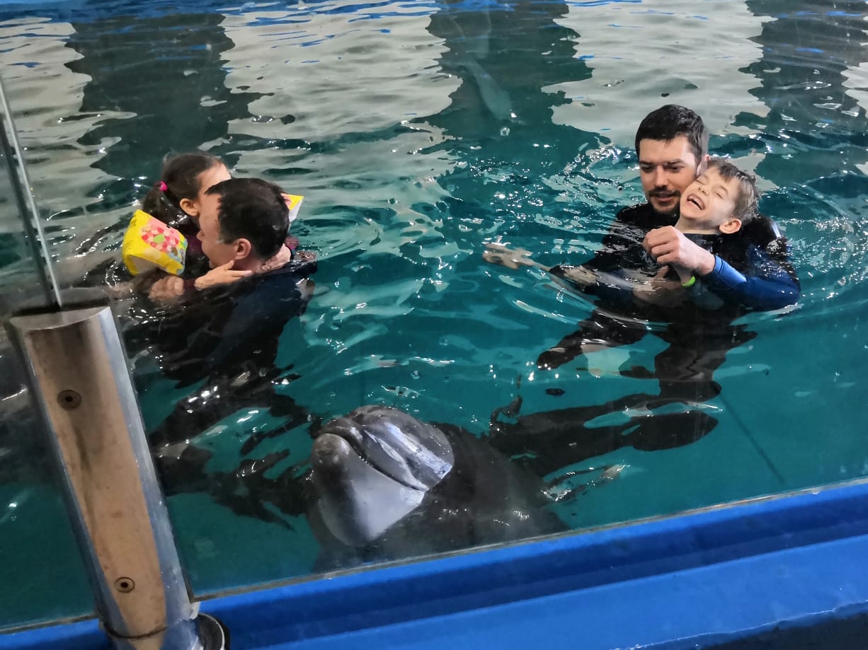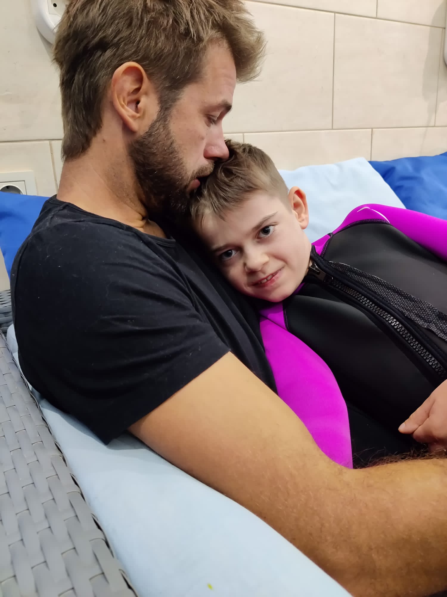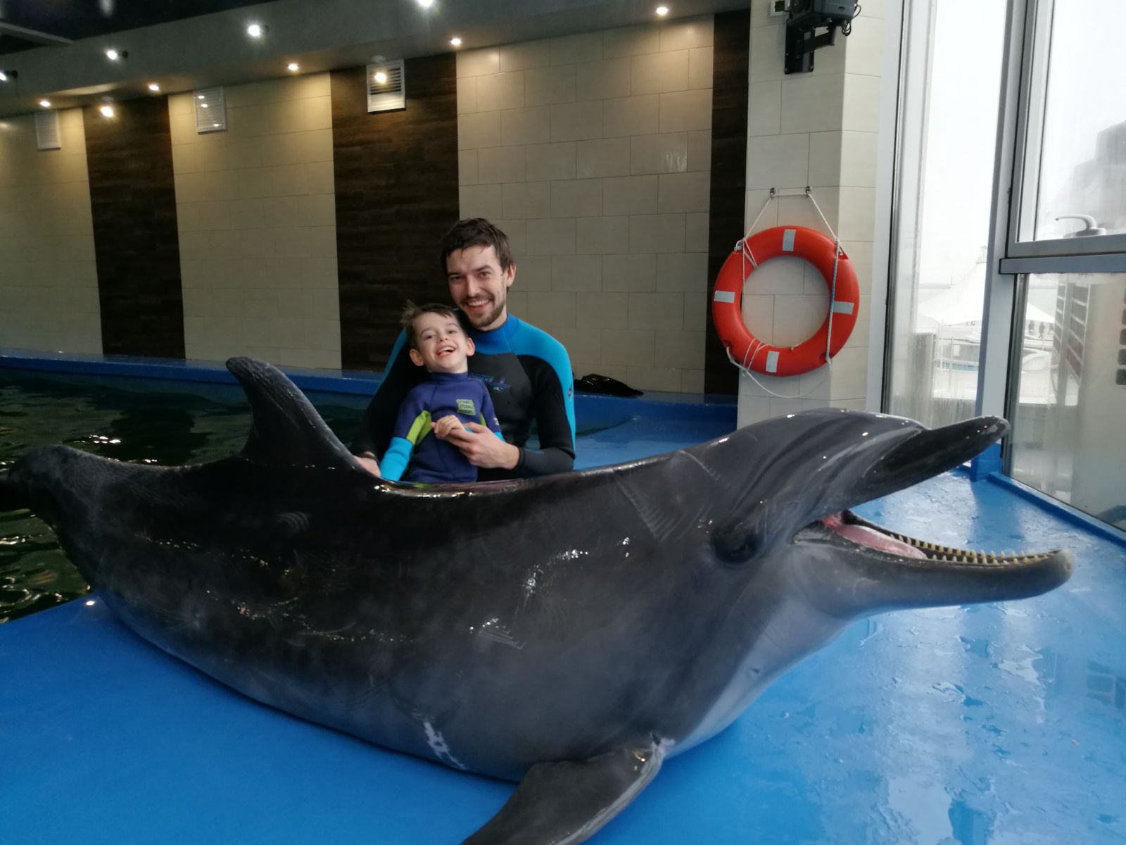 V říjnu jsme byli opět na Ukrajině v Oděse. Rehabilitace s delfíny. Let byl tentokrát v noci a tak to pro nás bylo trochu náročné a první plavání ve studené vodě jsem prořval. Ale pak pusinkuju delfíny a hlavně mi to pomáhá. Spím celou noc a ty hnusné křeče povolí.