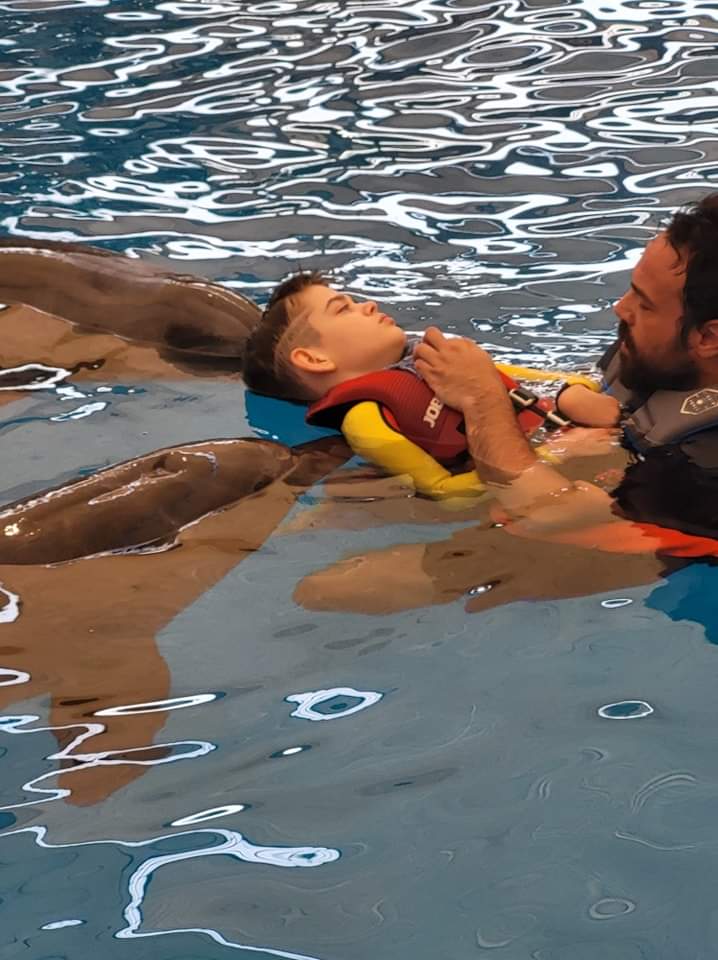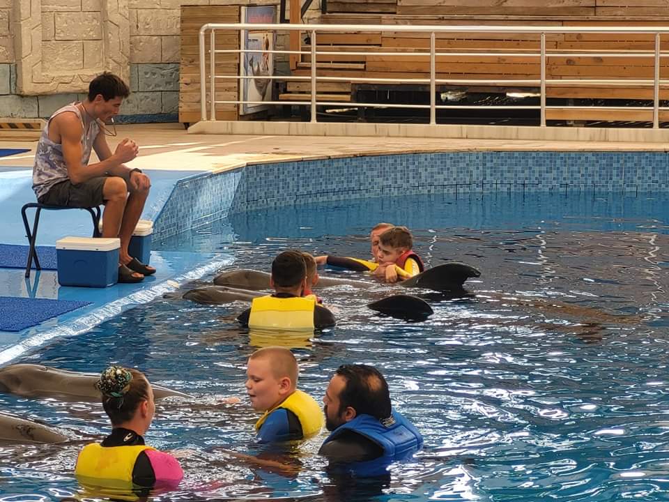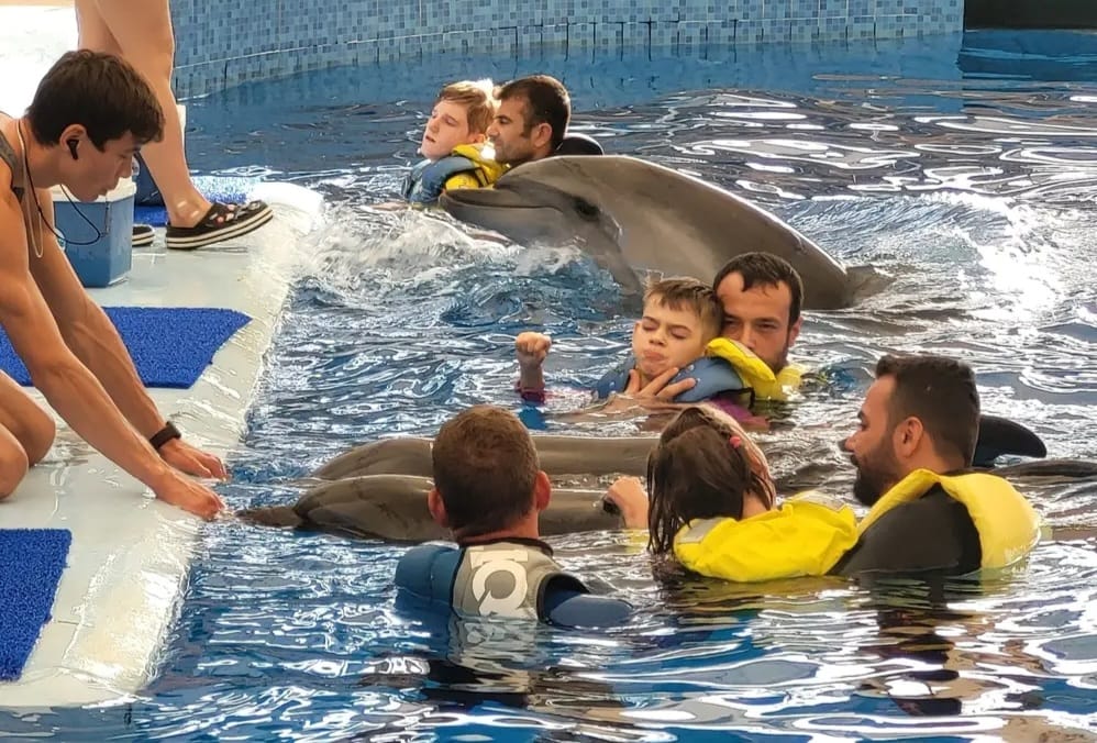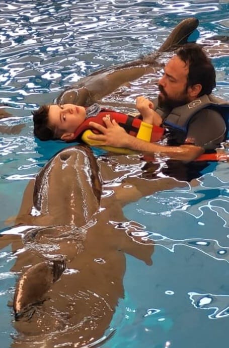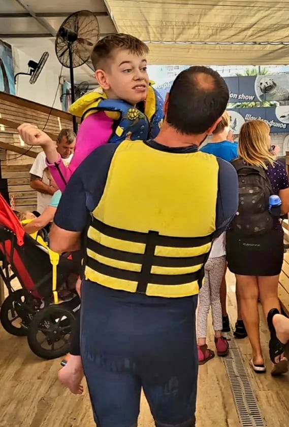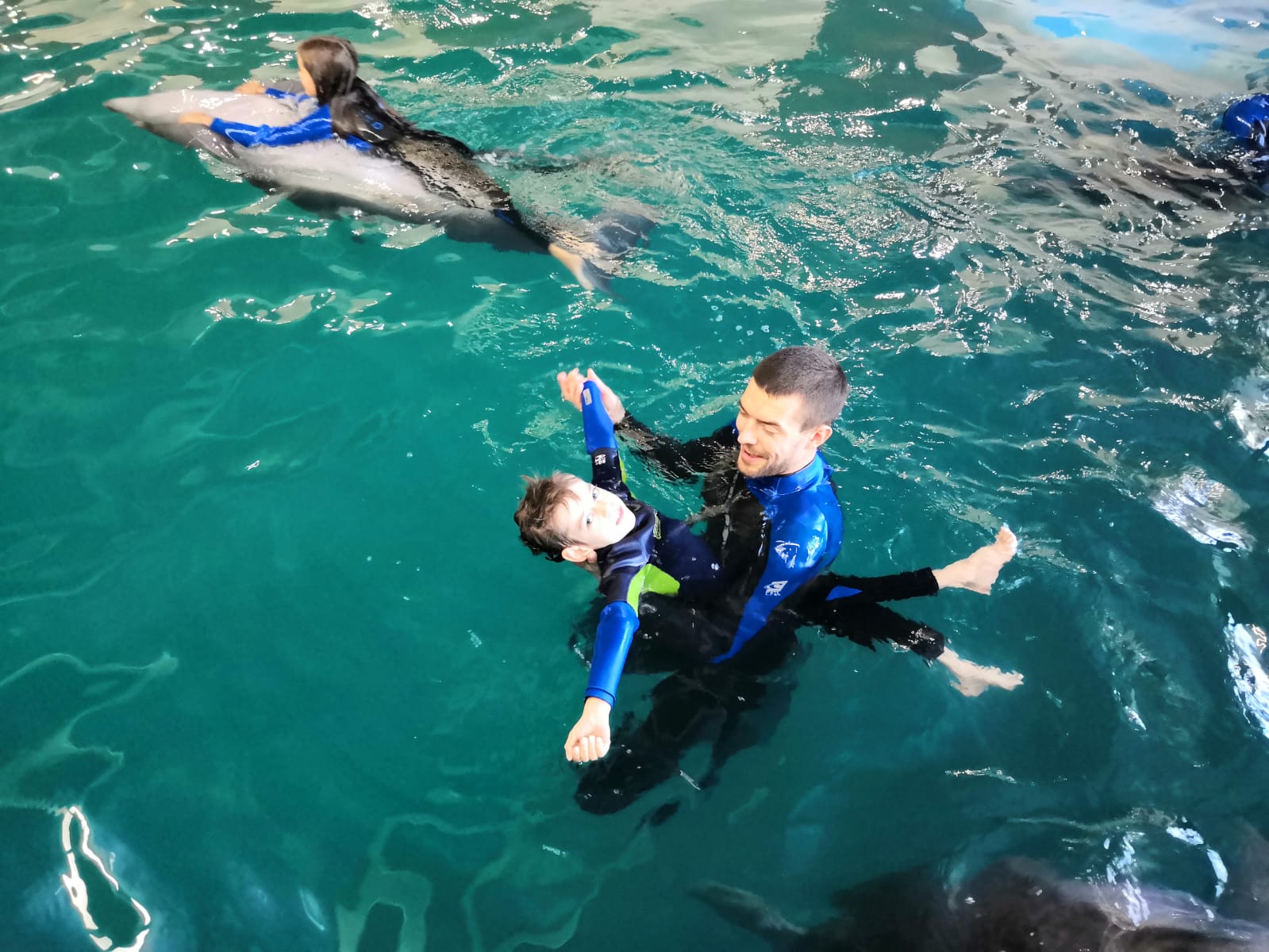 V říjnu jsme byli opět na Ukrajině v Oděse. Rehabilitace s delfíny. Let byl tentokrát v noci a tak to pro nás bylo trochu náročné a první plavání ve studené vodě jsem prořval. Ale pak pusinkuju delfíny a hlavně mi to pomáhá. Spím celou noc a ty hnusné křeče povolí.