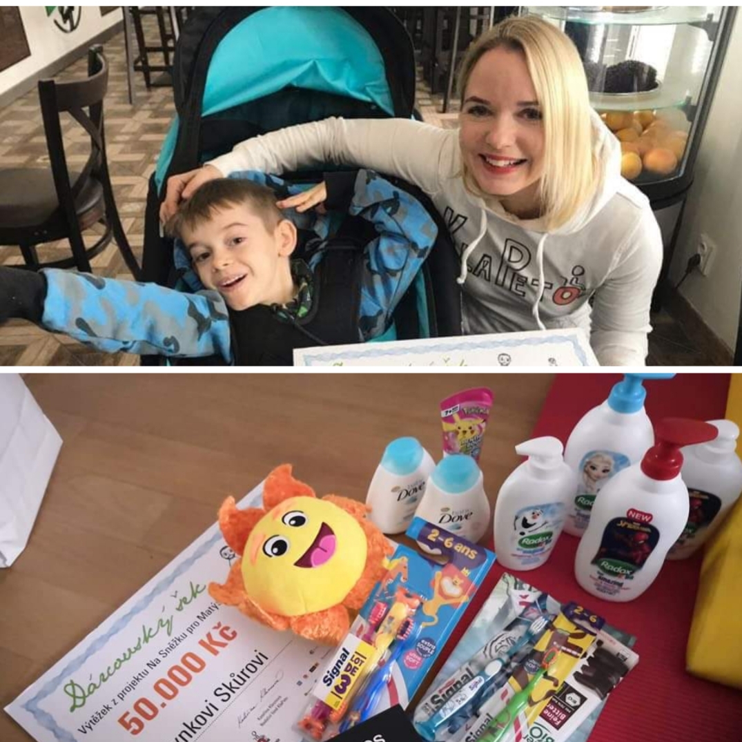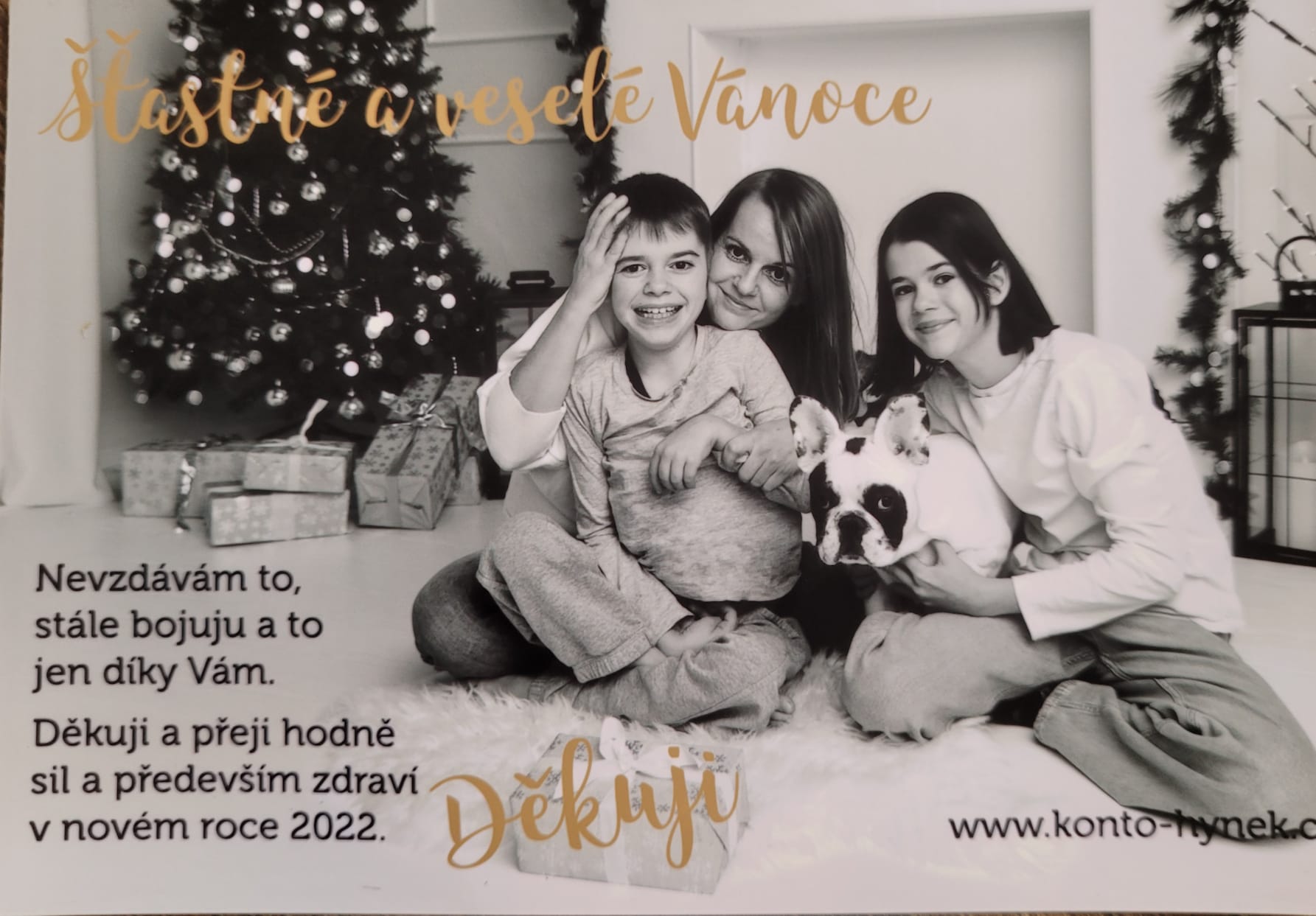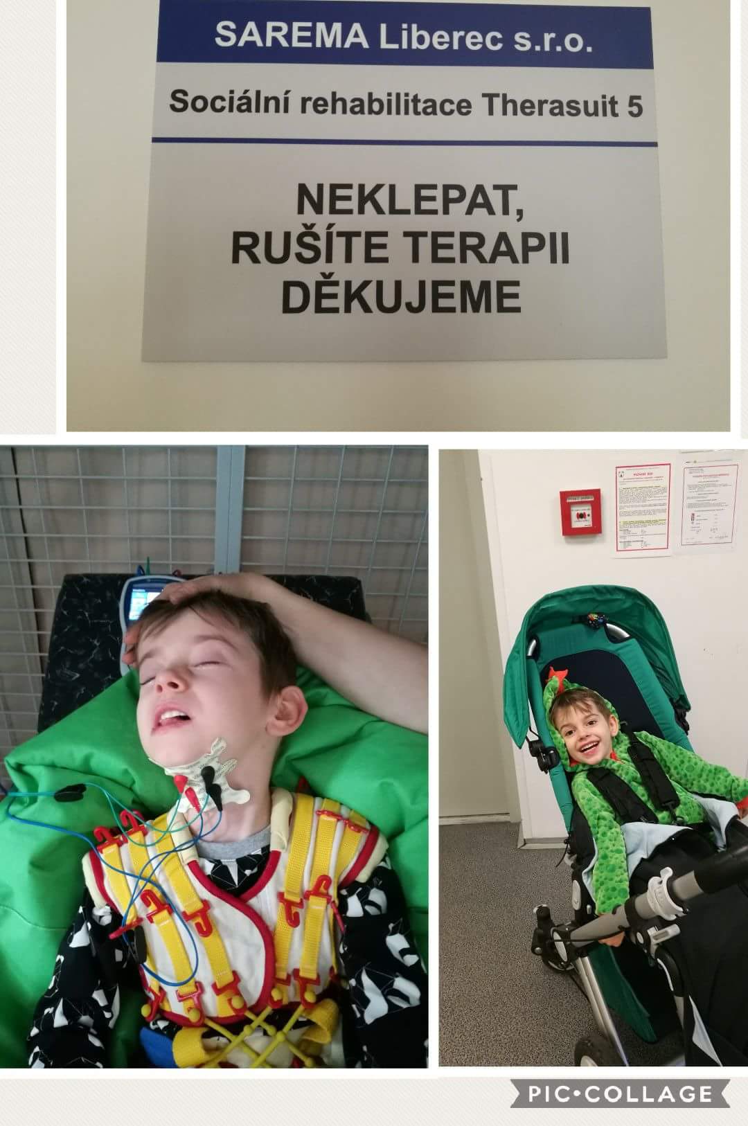 Na začátku měsíce jsem znovu cvičil v Praze, v Axonu. Dokonce jsme tam společně s mojí fyzioterapeutkou Irenkou oslavili i Mikuláše. I nadílka byla. Pak jsme opět onemocněli a tentokrát všichni, já ,Nelinka i máma. Prosinec je měsíc bilancování, chci poděkovat všem, kteří mi jakkoliv během tohoto roku pomohli. Děkuji za podporu, pomoc, energii, kterou mi dáváte. Nebýt Vás, nejsem tak daleko… A samozřejmě mnohokrát děkuji za finanční podporu, díky které můžeme jít za svým snem. Na vánočních trzích v ZŠ Tuřany pro mě děti nastřádaly 15.000Kč a 3.ZŠ Slaný 4.000Kč. Paní Jitka upekla opět překrásné perníčky i pro mé kamarády. V prosinci jsme také slavili kulatiny táty, ségry i babičky. Vánoce jsme slavili celá rodina pohromadě, je to pro nás velmi vzácný čas, protože během roku s mami objíždíme různé rehabilitační programy. Byl u nás i Ježíšek. Velkou radost mám z opice, směje se tak nahlas, až to s ní práskne na záda a to se pak řehtám já, děsně se mi líbí. A rok jsme zakončili parádně, Silvestrovský běh pro mě a kamaráda Adámka se prostě povedl. V Modřanech, v Praze se sešlo ještě víc lidí než loni, sešli se lidé, kteří chtějí pomáhat. Znovu dorazili a 5km běželi známí i neznámí: můj táta Jirka, Roman Pála, Ondřej Pála, bratři Svobodové, Šneci v běhu, Moravan Louňovice, boxeři Praha, Caffé Prokopio, Karel Kleinmond, Verunka a Zuzanka Kolářových, Jirka Trnka, Bára a Radek Liškovi, Bára Neumannová a spousta dalších prima lidiček…Bylo to veselé a milé. Srdečně přeji šťastný nový rok 2020.