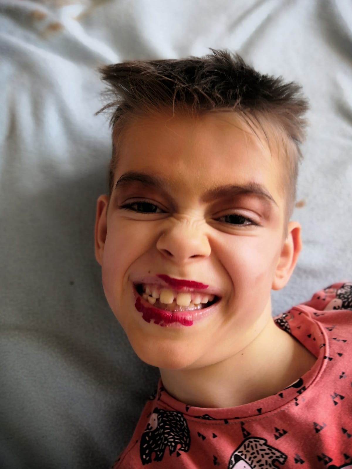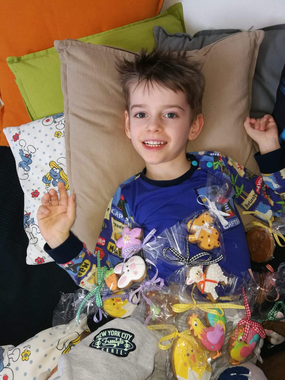 18.10. jsem měl 8.narozeniny, děkujeme Všem za milá přání. Jeden dárek jsem dostal i v Motole, po 4letech mi vyměnili peg v bříšku. V plné narkóze, tak jsme měli trochu strach co bude po probuzení, ale vše dobré. Dostal jsem nové léky na překyselení žaludku(někdy je mi trochu cítit z pusy a zlobí mě reflux) a….nějak mi lépe sedl a ležím i na bříšku.