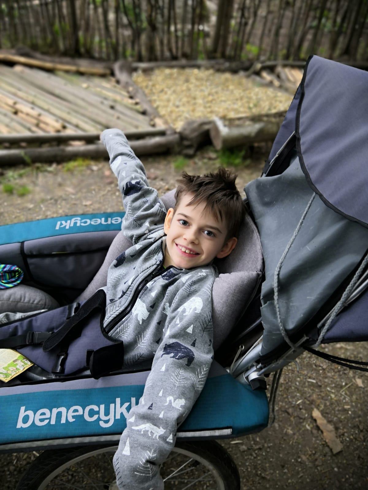 Tak je ze mě školák. Chodím do školy na Stochov, do Slunce. Paní učitelka se jmenuje Stáňa a ve třídě je nás 6. Učíme se o přírodě, barvy a počítáme. Pak chodím na logopedii k paní doktorce Jerolímové, učíme se komunikovat podle kartiček. V Praze jsem s mojí běžeckou partou vyrazil na Birel běh 10km. No to je vždy skvělé. Druhou půlku září jsem bohužel celou promarodil, teploty, kašel, bolest kyčle, takže postel a bez cvičení.
